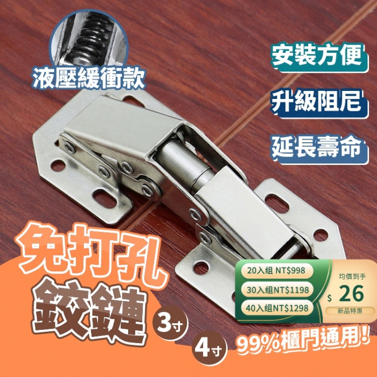 [20]【免運】免打孔鉸鏈20入组【均價49】NT$998