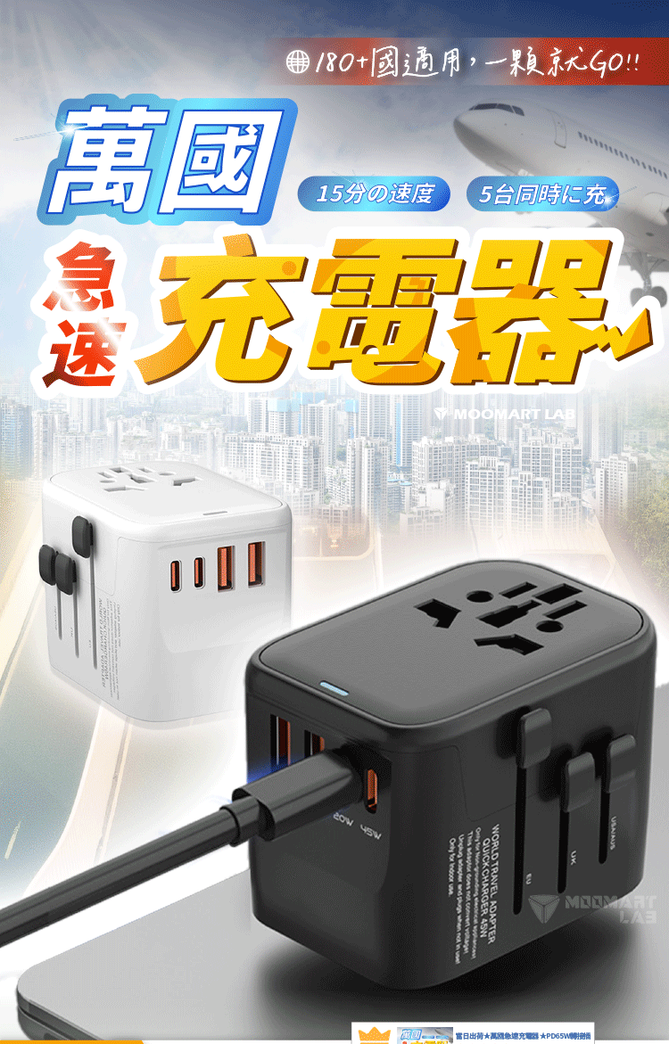 【萬國充電器】一顆搞定全球,極速充電無國界 出國不用帶轉接頭!隨插即用超方便