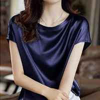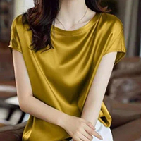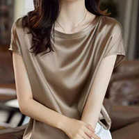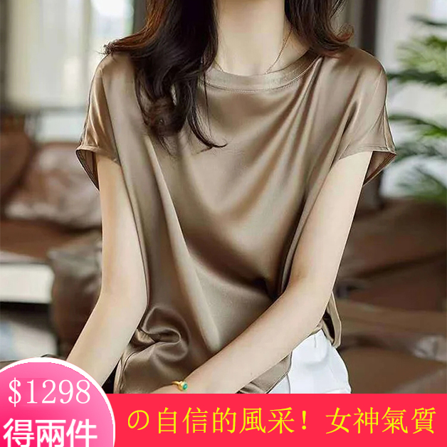 【女神氣質】 夏季新款上市 絲滑桑蠶絲真絲襯衫上衣 圓領寬鬆大碼短袖上衣,高級顯瘦!