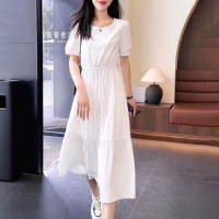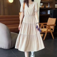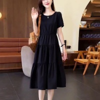 夏季衣櫥必備 顯瘦減齡 寬鬆中長款 收腰拼接顯氣質 短袖圓領百搭 時尚感拉滿
