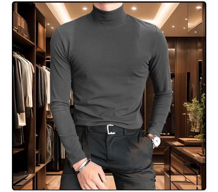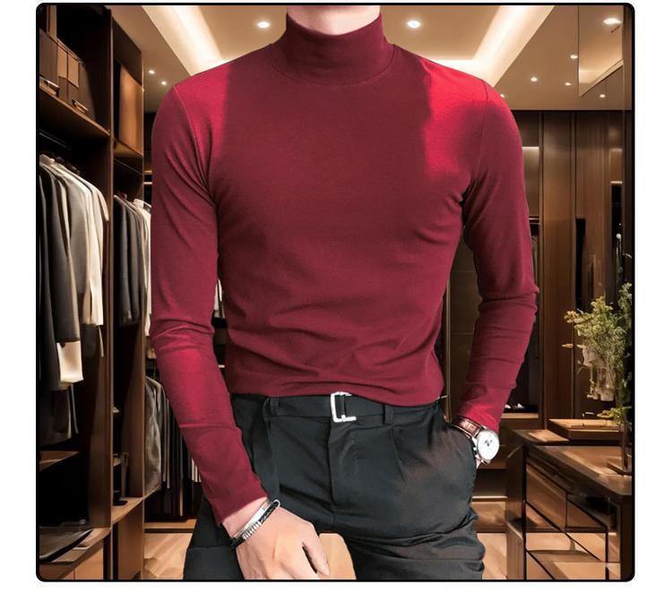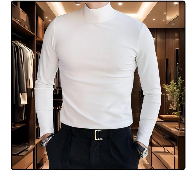 【總裁同款】秋冬半高領長袖t恤 男士純色秋裝上衣 秋冬打底衫內搭 半高領打底衫