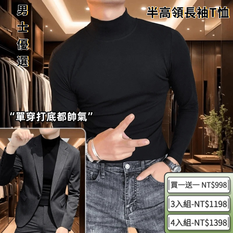 【2】男士半高領長袖打底衫【買一送一】2入組 僅需NT$1098(免運)