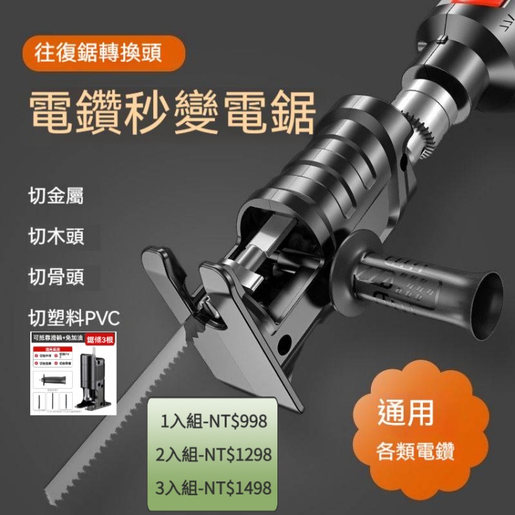 [3]【電鑽變電鋸轉換頭】額外配送鋸條3根 3入組-NT$1498(免運)