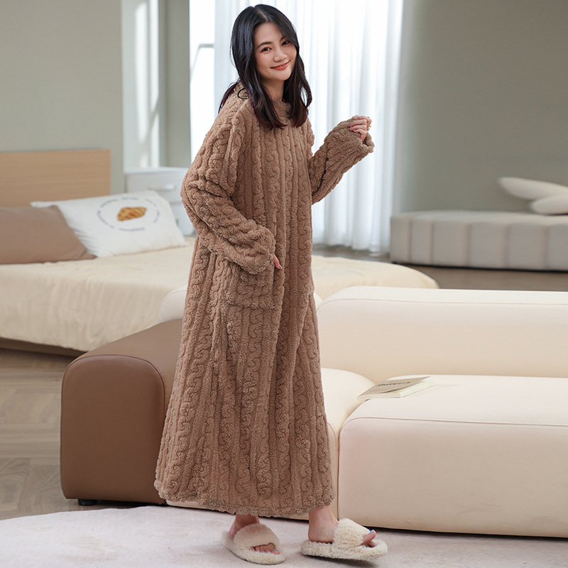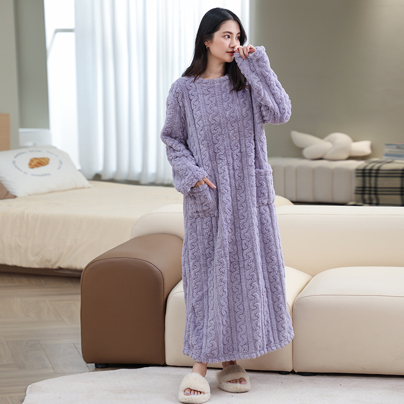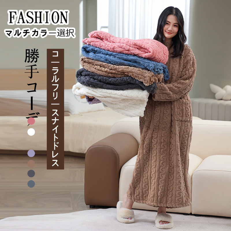 【秋冬珊瑚絨睡裙】加厚加绒,親膚面料,穿脫簡單,保暖防寒,自带口袋,吸水能力強,寬鬆大碼