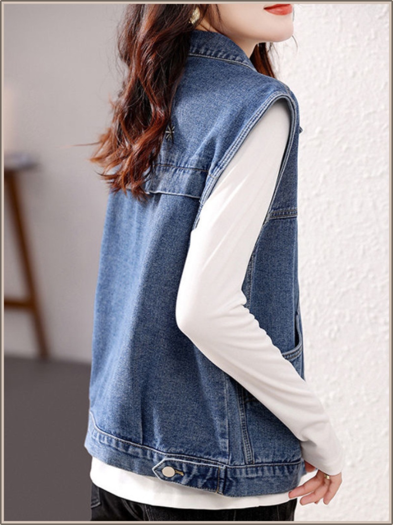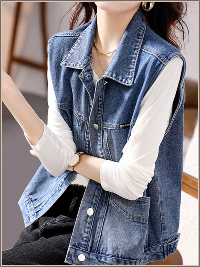 溫柔知性牛仔馬甲,淺藍水洗清新柔和,小翻領修飾臉型,約會或出遊都能襯托你的優雅氣質